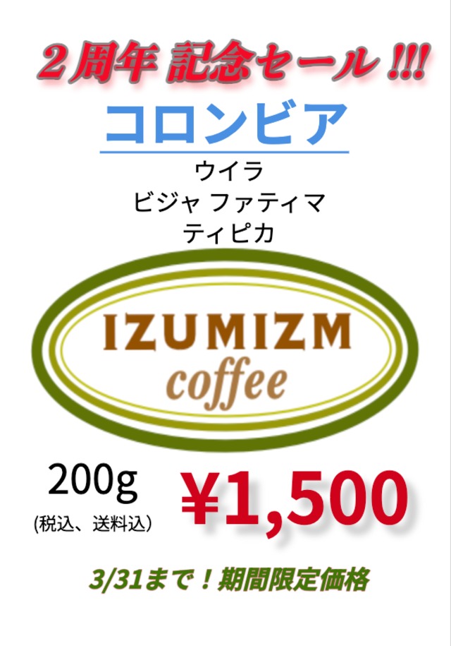 • 二周年記念価格 『コロンビア』 100g