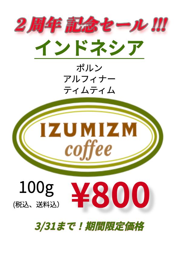 二周年記念価格 『インドネシア』 100g
