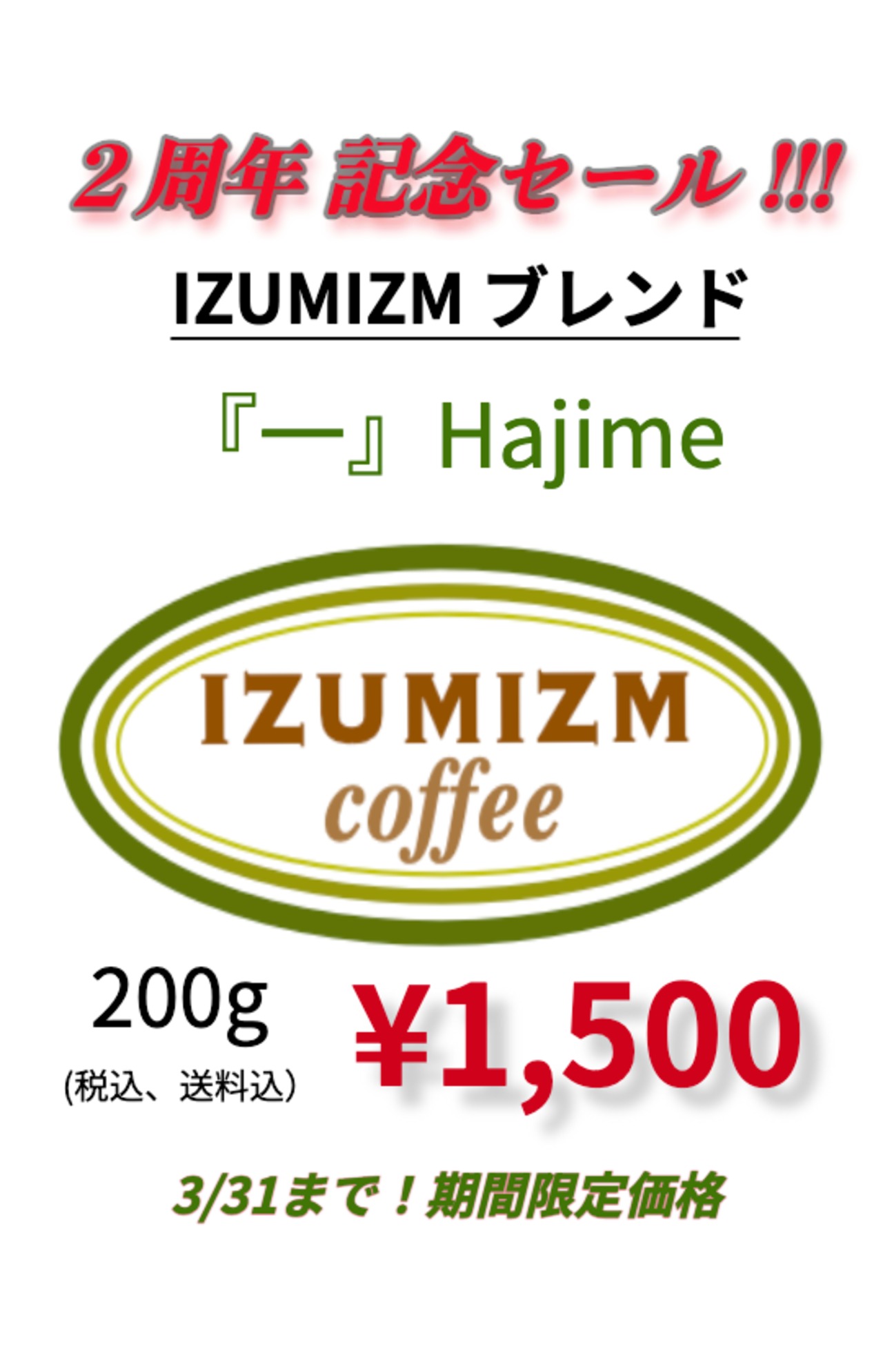 二周年記念価格 IZUMIZMブレンド『一』Hajime 200g
